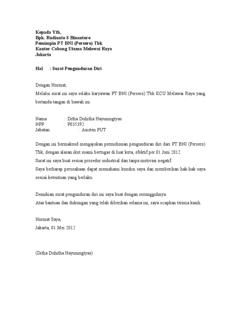 Contoh Surat Pengunduran Diri Karena Ikut Suami Kumpulan Surat Penting