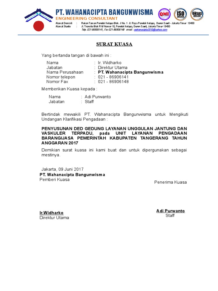 Contoh Surat Kuasa Direktur Untuk Proyek